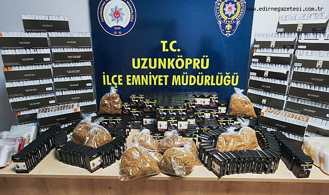 Edirne'nin Uzunköprü ilçesinde düzenlenen operasyonda 17 bin 500 doldurulmuş makaron ve 2 kilo 100 gram kıyılmış tütün ele geçirildi.İlçe Emniyet Müdürlüğü Suç Önleme ve Soruşturma Büro Amirliği ekipler, kaçak sigara ve doldurulmuş makaron satışının önlenmesine yönelik çalışmalar kapsamında Rızaefendi Mahallesi'nde bir işyerine operasyon düzenledi.İşyerinde yapılan aramada 17 bin 500 doldurulmuş makaron ve 2 kilo 100 gram kıyılmış tütün ele geçirildi.İşyeri sahibi Y.E. ve çalışan İ.E. hakkında "5607 Kaçakçılık Kanunu"na muhalefetten işlem yapıldı. AA
