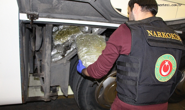 Kapıkule Sınır Kapısında bir otobüste 233 kilo 988 gram uyuşturucu ele geçirildi.