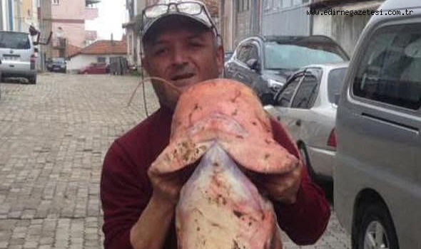 Edirne’nin Kıyık semtinde esnaflık yapan Ersan Öztaş, Süloğlu Barajı’nda oltayla yakaladığı yaklaşık 40 kilogramlık yayın balığını mahalle halkına dağıttı.