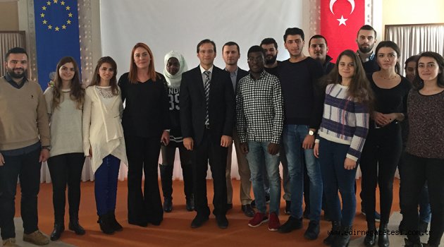 Edirne AB Bilgi Merkezi etkinliklerine ara vermeden devam ediyor.Edirne AB Bilgi Merkezi, Kadına Yönelik Şiddetle Mücadele Günü kapsamında tamamladığı 10 günlük etkinliğin hemen akabinde ara vermeden, bu kez Trakya Üniversitesi öğrencileri ile bir araya geldi.Edirne AB Bilgi Merkezi ve Trakya Üniversitesi Dış İlişkiler Birimi ve Proje Koordinasyon Uygulama ve Araştırma Birimi ortaklığı ile, Trakya Üniversitesi öğrencilerine yönelik olarak “Erasmus Plus ile Daha iyi Bir Gelecek için Daha İyi Fırsatlar” isimli bir söyleşi etkinliği düzenlendi.Üniversiteli Yaşam Merkezi Ünisite’de gerçekleştirilen etkinliğin açılış konuşmasını yapan Edirne AB Bilgi Merkezi Koordinatörü Elif Yardımcı, öğrencilere Türkiye’de AB Bilgi Merkezleri Ağı Projesi, projenin hangi amaca hizmet ettiği, AB Bilgi Merkezi’nin yapısı ve öğrencilerin Merkezden nasıl istifade edebileceği noktalarında bilgiler verdi. Yardımcı’nın ardından etkinliğin ana teması olan Erasmus Plus programının tanıtımını, Trakya Üniversitesi Dış İlişkiler Birimi ve Erasmus Koordinatörü Doç. Dr. Murat Türkyılmaz yaptı. Programın içeriği, öncelikleri ve hedeflerini kendi tecrübeleri ile harmanlayarak renkli bir dille anlatan Türkyılmaz, öğrencilerin oldukça ilgisini çekti. Programın öğrencilere kazandıracağı avantajların önemle altını çizen Türkyılmaz, öğrencileri programdan faydalanmaya ve fon kaynağını etkin bir şekilde kullanmaya davet etti. Etkinlik daha sonra, Erasmus Plus Hareketliliği’ni anlatan Trakya Üniversitesi Dış İlişkiler Birimi Uzmanı İlkay Kaleli’nin sunumu ile devam etti. Kaleli, Erasmus Programına dahil olan ülkeler, hareketlilik türleri, başvuru koşul ve kriterleri, kullanılacak bütçe vs. gibi uygulamaya yönelik alanlarda öğrencilere detaylı bilgiler verdi. Etkinlik kapsamında öğrencilerin bir diğer merak ettiği husus olan Erasmus Programı kapsamında uygulanan projeler, sağlanan fon kaynakları ve kurum ve kuruluşlar tarafından yürütülmesi noktasında ise Trakya Üniversitesi Proje Koordinasyon Uygulama ve Araştırma Merkezi Uzmanı Burcu Ören Özer bir sunum gerçekleştirdi. Programın teknik detayları ve bir proje hazırlama sürecinin püf noktalarına değinen Özer’in sunumunun ardından bir kokteyl ile devam eden söyleşi, öğrencilerin soru ve cevapları ile son buldu