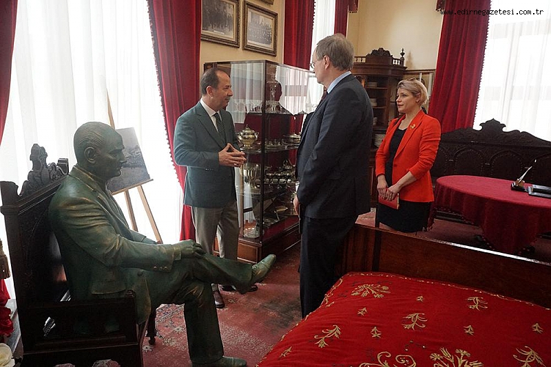 Edirne Belediye Başkanı Recep Gürkan, AB Türkiye Delegasyonu Başkanı Büyükelçi Christian Berger’e Sınır Ötesi İşbirliği Projeleri’nde (IPA) yaşadıkları sorunları anlatarak, “Yılda en fazla 3 IPA projesi yapabiliyorum ve büyüklüğü 600 bin EURO’yu geçmiyor. Neden daha büyük projeler yapamıyorum. AB’nin adalet mekanizmasına güveniyorum ve mekanizmayı işletmesini istiyorum” dedi. AB Türkiye Delegasyonu Başkanı Büyükelçi Christian Berger, Edirne Belediye Başkanı Recep Gürkan’ı makamında ziyaret etti.AB Türkiye Delegasyonu Başkanı Büyükelçi Christian Berger ile Edirne ve Edirne’nin sınır komşuları ile ilgili bir takım görüşmeler yapan Edirne Belediye Başkanı Recep Gürkan, geçtiğimiz hafta Brüksel’de; Avrupa Bölgeler Komitesi’nde anahtar konuşmacı olarak yer aldığını söyledi. Avrupa Bölgeler Komitesi Başkanı Karl-Heinz Lambertz ile baş başa bir görüşme yaptıklarını belirten Gürkan, “ Aralık Ayı’nda Bölgeler Komitesi olarak Ankara’nın Kazan ilçesinde bir toplantımız olacak. Avrupa Bölgeler Komitesi Başkanı Karl-Heinz Lambertz Mayıs 2019’da ayrıca Edirne’ye gelecek ve Edirne’de bir toplantı yapacağız. Lambertz de böylelikle ilk kez Türkiye’ye gelecek. Türkiye’de Sosyal Demokrat Belediyelerin kurduğu bir birliğimiz var; SODEM. Ben SODEM’in Yönetim Kurulu Üyesiyim. O yüzden her yıl Brüksel’e her yıl gidiyoruz. Her yıl bana mutlaka bir konuşma yaptırıyorlar. Aslında orada sert de konuşuyorum. Belki de gerçekleri çok yalın bir şekilde söylediğim için olabilir. Bu yıl yine öyle oldu. Daha önce AB’nin bize karşı adaletli davranmadığını söylemiştim. IPA için en büyük bütçe Türkiye’ye ayrılıyor gibi ama nüfusa oranladığımızda biz diğer AB ülkelerinin aldığının neredeyse binde birini alıyoruz. 2 yıl önceki bir toplantıda bunu güne getirmiştim. Ama maalesef bir düzelme olmadı hatta kötüleşme oldu. Yunanistan, interreki çalıştırmıyor. Edirne Belediyesi olarak yılda 3 tane IPA Projesi yapabiliyoruz. Bu yıl 2 proje yapabildim. Ama projenin büyüklüğü 600 bin EURO’yu geçemiyor. Ben niye daha büyük projeler yapamıyorum. AB’nin adalet mekanizmasına güveniyoruz ve bu mekanizmayı işletmesini istiyoruz. IPA kapsamında şuanda toplam 4 projemiz var. 4 projeyi de şuanda uyguluyoruz. 4 projeden aldığımız pay 930 bin EURO ” dedi. Edirnelilerin, Atatürk ve Atatürk’ün değerlerine çok bağlı olduğunu belirten Gürkan, “Biz AB normlarını istemiyoruz. Biz Avrupa normlarını istiyoruz, insanlarımız için. Bir hafta sonunu ayırırsanız Edirne’yi bizzat kendim gezdirmek isterim. Edirne mutlaka gezilmesi, görülmesi gereken şehirlerden birisidir. Edirne; Uluslararası tüm kuruluşların raporlarında dünyada en çok turist çeken şehirler arasında 68 sırada, 3 milyon turist ile. Bunun 500 bini yurtdışından gelen. Geçtiğimiz yıl Kakava ve Hıdırellez Şenlikleri’ne 30 bin kişi katılmıştı. Bu yıl ise Kakava ve Hıdırellez Şenlikleri’nin UNESCO’ya girmesi ve bizlerin tanıtım çalışmaları sonucunda bu sayı 80 bine çıktı” diye konuştu. AB Türkiye Delegasyonu Başkanı Büyükelçi Christian Berger, Edirne’de olmaktan memnuniyet duyduğunu belirtti. Başkan Gürkan’ın görüşlerini dikkate alacağını kaydeden Berger, yeniden Edirne’ye gelmek istediklerini söyledi. Gürkan, daha sonra AB Türkiye Delegasyonu Başkanı Büyükelçi Christian Berger’e Atatürk Odası’nı ve tarihi Belediye Binası’nı gezdirerek, bilgi verdi.