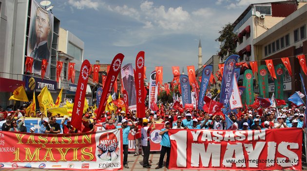 1 Mayıs İşçi ve Emekçi Bayramı kapsamında Edirne Emek ve Meslek Örgütleri Platformu (TÜRK-İŞ, DİSK, KESK, BİRLEŞİK KAMU-İŞ, TMMOB, TTB) öncülüğünde toplanan kalabalık İzmir Marşı eşliğinde yürüyerek Saraçlar Caddesi’nde ortak basın açıklaması yapıldı.Edirne Türk İş İl Temsilcisi ve Tes-İş Edirne Şube Başkanı Zeki Şişko ortak basın açıklamasında, 1 Mayıs’ın 131 yıl 1 Mayıs 1886 günü, sekiz saatlik işgünü hakkı için sürdürülen mücadelenin başlangıcı olduğunu belirterek, “1 Mayıs, işçi sınıfının mücadele ederek elde ettiği kazanımlarıyla, kararlılığıyla, dayanışmasıyla anlamlı kıldığı bir gündür. Biz işçiler din, dil, ırk, siyasi düşünce ayrımı olmaksızın, emek gücüyle yaşam mücadelesi verenler olarak, ortak taleplerimizi yüksek sesle dile getirmek için bu gün burada bir kez daha bir araya geldik. Bugün burada olduğu gibi ülkemizin diğer şehirlerinde, dünyanın birçok yerinde, bizlerle aynı kadere sahip arkadaşlarımız, işçiler, emek dostları, hak ve özgürlük talepleriyle alandalar. Bizim kaderimiz ortak.Biz, insanca çalışmak ve yaşamak istiyoruz. Taşeronda, güvencesiz, kuralsız çalışmak, ucuz işgücü olmak, iş kazalarında can vermek istemiyoruz. Çalışırken, sokakta ve alanlarda ölmek istemiyoruz. 40 yıl önce 1 Mayıs 1977’de katledilen işçilerin failleri hala aydınlatılmadığı gibi, 10 Ekim 2015’te Ankara Gar’da Ülke tarihimize en kanlı katliamı olarak geçti” dedi.Şişko, ülkelerimiz ayrı ama kaderlerimiz hep aynı diyerek, Biz emekçiler, dünyanın farklı ülkelerinde yaşasak bile benzer sorunlarla karşı karşıyayız. Sorunlarımız ortak ama mücadele azmimiz ve kararlılığımız da ortak. Çünkü biz birlik olursak emek mücadelesinin kazanını hepimiz olacağız. Bizler alın teriyle, haram lokma yemeden yaşam mücadelesi verenleriz. Bizler, tüm insanların refah ve huzur içinde kardeşçe yaşadığı bir dünyayı hayal ediyoruz. Burada “Ekmek, Barış, Özgürlük” sloganıyla bir araya geldik. Ekmeğin hakça bölüşümünü. Özgürlüğün siyasal ve ekonomik demokrasiyle sağlanmasını talep ediyoruz. İşin, ekmeğin olmadığı bir yerde sosyal barışın da olmayacağını biliyoruz. Emeğin baş tacı edildiği, her alanda demokrasinin geçerli olduğu bir düzen istiyoruz. Sorunlara karşı mücadeleyi yükseltmek için tekrar bir aradayız. Kıdem tazminatımıza el uzatılmasına, haksız yere işten çıkarmalara, açlığa ve sefalete mahkûm bırakılmaya, sendikasızlaştırmaya, güvencesizleştirmeye, çocuklarımızın geleceğinin çalınmasına ve top yekûn hayatımızın karartılmasına karşı alanlardayız. Eşitliği, barışı, kardeşliği ve özgürlüğü ülkemizde ve tüm dünyada egemen kılacak güç bizleriz. Tüm kurum ve kurallarıyla demokrasi, ancak bizlerin mücadelesi ile sağlanabilir.Bilindiği gibi, emekçilerin haklarını geliştirmeyen, aksine zarar veren ve tek adam rejimini dayatan bir anayasa için referanduma gidildi. Devletin tüm olanaklarının kullanılmasına, tek sesli medyaya, hayır diyenlerin engellenmesine rağmen yurttaşların en az yarısı HAYIR dedi. Böyle bir anayasa değişikliği ile ülke huzur, barış ve istikrar bulamayacaktır. Türkiye’nin acil ve yaşamsal ihtiyacı eşitlikçi, özgürlükçü, laik ve sosyal bir anayasadır” şeklinde konuştu.Emekçilerin yüzlerce yıl süren mücadeleler sonunda elde ettiği haklar ellerinden alınmak istendiğini ifade eden Şişko, “Sağlık, eğitim, sosyal güvenlik özelleştiriliyor; sosyal devlet ortadan kaldırılıp yerine paranın egemen olduğu bir düzen kurulmak isteniyor. Denetimsizliği, kuralsızlaştırmayı, esnekleştirmeyi öneren bu politikalara karşı mücadelemizi sürdüreceğiz. Sendikalı ve toplu sözleşmeli çalışma koşulları, sosyal adalet, eşitlik, kardeşlik, barış ve özgürlük için her zamankinden daha kararlı şekilde mücadele edeceğiz. Ortak geleceğimizi birlikte barış içinde belirlemeliyiz. Toplumda ayrışma riski ortadan kaldırılmalı, kardeşlik bağıyla bu ülkenin tüm kesimleri ortak akıl çerçevesinde bir yol haritası belirlemelidir. Ülkemizin çalkantılı siyasi tarihinde, darbelerden, muhtıralardan en fazla etkilenenler biz emekçiler olmuştur. Dünyanın farklı ülkelerinde ve ülkemizde görüldüğü gibi, darbe dönemlerinde en fazla hak kaybına uğrayanlar emekçilerdir. Emekçiler darbelerin en büyük düşmanı, demokrasinin en büyük dostudur. Tam demokrasinin sağlandığı ortamlar, işçi hak ve özgürlüklerinin yaşama alanıdır. 15 Temmuz 2016 tarihinde başarısızlığa uğratılan darbe girişimini de tüm darbeleri de lanetliyoruz. Savaşların olduğu coğrafyalarda insan hakları ve emek mücadelesinden söz edilemez; sağlanacak barış, en fazla emekçiler açısından kazanımdır. Emekçilerin kazanımı tüm toplumun kazanımıdır. Hukukun üstünlüğü ilkesi, biz emekçilerin sürdürdüğü mücadelenin olmazsa olamazıdır. Hukukun üstünlüğü çerçevesinde, her türlü görüşün düşüncenin görsel ve yazılı bir şekilde dile getirilmesi ve dağıtılması için gerekli ortam sağlanmalıdır. Basın özgürlüğü demokratik yapının güvencesidir. Uygulanan iktisat politikalarının temelinde insan ve istihdamın artırılması olmalıdır. Güvenceli ve insan onuruna yarışır iş kollarında çalışmak bir ayrıcalık değil, en temel insan hakkıdır. Kadınların toplumsal yaşamda yer almalarına yönelik olumsuz yargıların ortadan kaldırılması için hem sendikalar hem de ilgili kamu kurumları çalışmalar yapmalıdır. Toplumsal yaşama güçlü bir şekilde katılım, kadınlara karşı uygulanan şiddet döngüsünün kırılmasında büyük rol oynayacaktır. Taşeron sorunu işçi statüsünde, sendikalaşma ve toplu sözleşme h