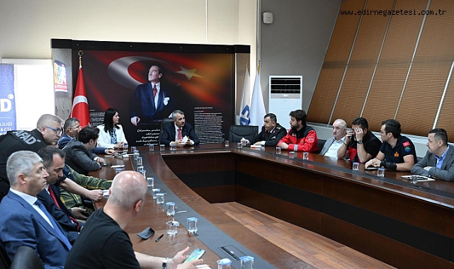Vali Yunus Sezer, Edirne Belediye Başkanı Filiz Gencan Akın ve kurum müdürleri  Afet ve Acil Durum Kurulu’nda bir araya gelerek, AFAD koordinasyonunda, tüm senaryoları değerlendiriyor; olası risklere karşı kentin hazır ve dayanıklı kalması için gerekli tüm adımları gözden geçirildiği ifade edildi.