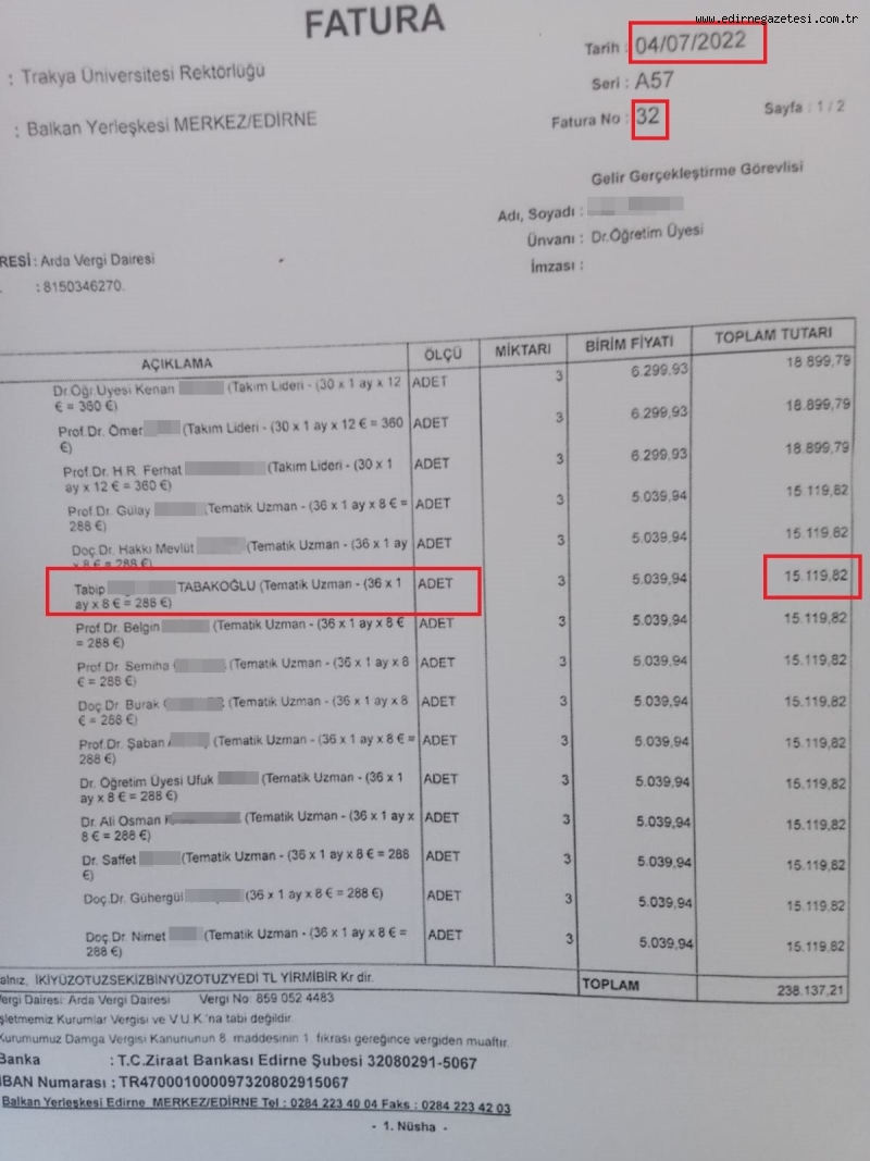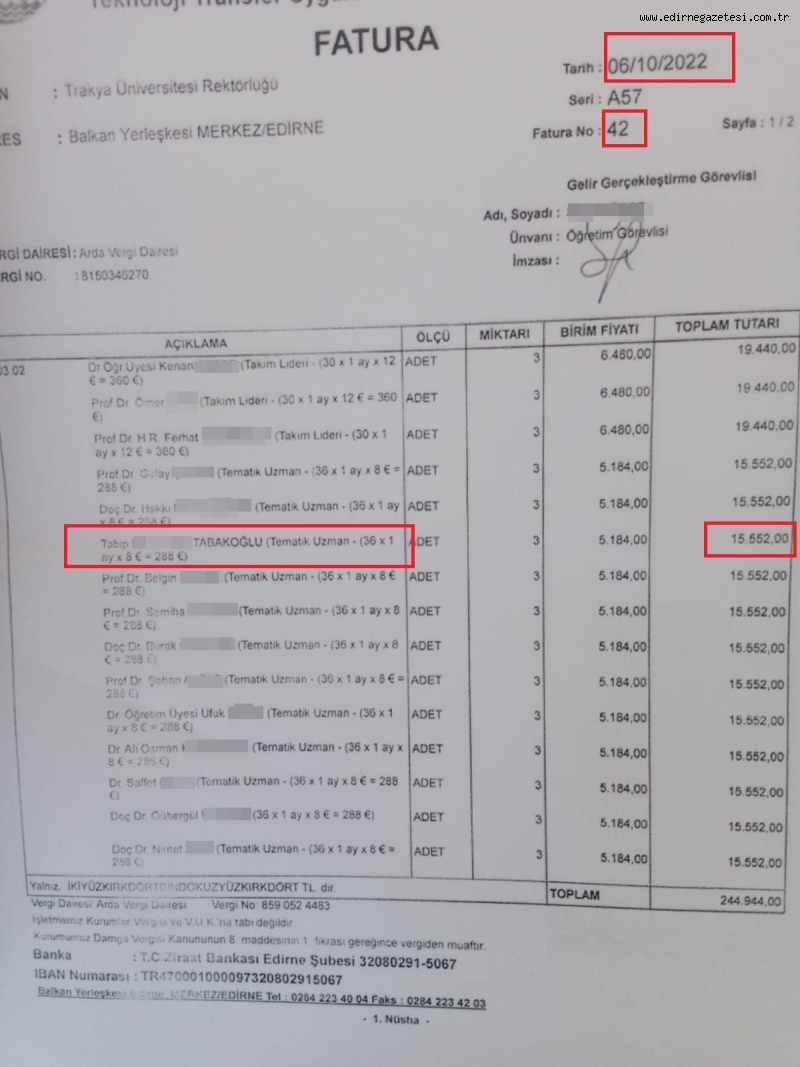 Herkesi şaşkına çeviren iddiaları ‘VartoLu’ kullanıcı adıyla bir twitter kullanıcısı paylaştı. Paylaşımda şu iddialar iddia edildi, “Trakya üniversitesi rektörü Erhan Tabakoğlu akademik kadroda olmayan karısına bilimsel proje ile aylarca bin $ maaş bağlattı. Durumu sayıştayın fark etmesi ve yolsuzluk raporu tutması üzerine hepsini iade edeceğini belirtti. Rektör daha önce de baldızını işe almıştı. İşte makbuzlar. Kendisi yasalara göre eş durumundan Trakya üniversitesine atanan pratisyen bir doktor ve akademik kadroda değil. Proje ödeneği ALAMAZ.”