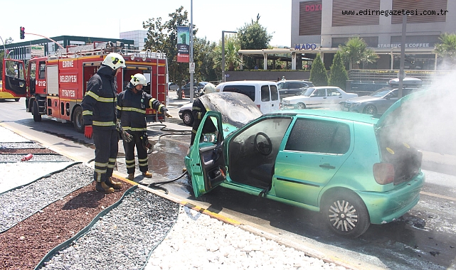 Edirne'de seyir hakindeki bir otomobilde çıkan yangın itfaiye ekipleri tarafından söndürüldü.Alınan bilgiye göre, Ç.S. idaresindeki 39 LB 673 plakalı otomobil, Atatürk Bulvarında seyir halindeyken motor kısmından alev aldı.Durumu fark ederek otomobil yol kenarına çeken sürücü, araçtan indi. Bazı vatandaşlar da yangın tüpleriyle araca müdahale etti.Olay yerine gelen itfaiye ekipleri yangını kısa sürede söndürdü. Yangın sonrası araçta hasar oluştu.AA