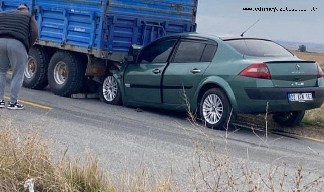 Dün saat 17.00 sıralarında, Esetçe ile Aliçopehlivan köyleri arasındaki ana yol kenarında yakılan anız yangını yoğun duman oluşturdu. Görüş mesafesinin düşmesi nedeniyle yolda seyir halinde olan bir otomobil, önünde seyreden traktörün römorkuna çarptı.