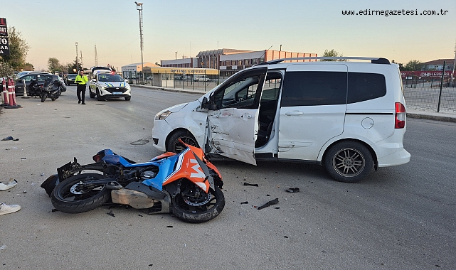 E.T'nin kullandığı hafif ticari araç İstasyon Mahallesi'ndeki Edirne Tren Gar'ı önünde A.E'nin idaresindeki motosikletle çarpıştı.