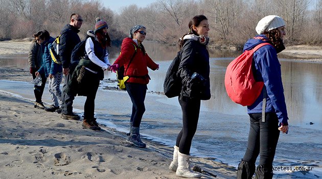 Karaağaç’ta buluşarak doğa yürüyüşüne bu noktadan başlayan 20’yi aşkın doğasever, Pazarkule ve Kastanies sınır kapılarındaki işlemlerin ardından ilk olarak Yunanistan’ın en büyük açık hava festivallerinden birinin yapıldığı alana inerek bazı bölgeleri buz tutmuş Arda Nehri’nde fotoğraf çekildi. Daha sonra nehir boyunca uzanan yolu takip ederek Rizia Köyü’ne varan doğaseverler burada Yunanlı köylülerle sohbet ederek kahve içti. Daha sonra aynı güzergâhtan geri dönerek Kastanies Köyü’nde de bir mola veren doğaseverler sınır kapılarındaki işlemlerin ardından Edirne’ye döndü.