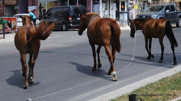 Edirne’de başıboş dolaşan atlar, şehir merkezindeki cadde, park ve bahçeleri mesken tutu.