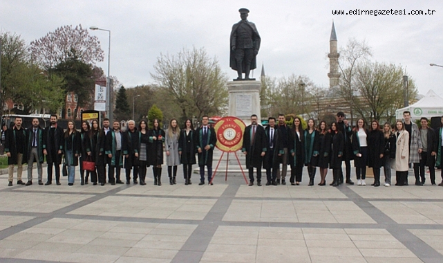 Edirne'de Atatürk Anıtı'nda düzenlenen törende Baro Başkanı Gökhan Karakoç, anıta çelenk sundu. Karakoç, “Mesleğimizin, geçtiğimiz yıl “Avukatlar Günü’nü kutla(ya)mıyoruz” dememize sebep olan sorunlarının çözümü için somut bir tek adım atılmamışken, mevcut sorunların üzerine deprem felaketinin yarattığı çok ağır ve yeni sorunlar eklenmiş durumdadır.”dedi.