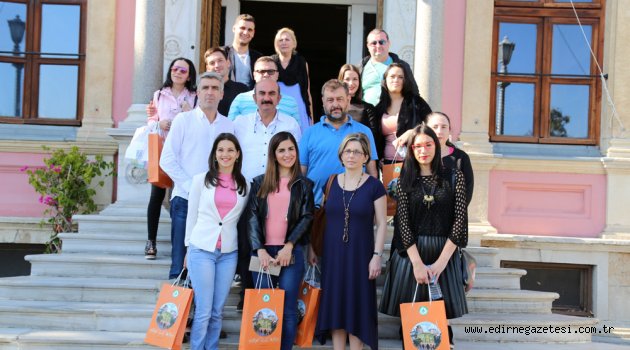 Kendilerinin ziyaretinden memnuniyet duyduğunu ifade eden Edirne Belediye Başkan Yardımcısı Dr. Ertuğrul Tanrıkulu, Balkan Ülkeleri’nden gelen gazetecilere Tarihi Belediye Binası’nda bulunan tarihi tablolar ve Atatürk Odası hakkında detaylı bilgiler verdi. Tanrıkulu, Edirne’nin 3 eserini de UNESCO Dünya Kültür Mirası Listesi’ne dahil etmiş bir şehir olduğunu belirterek, Edirne’nin içinde asırlık geçmiş barındıran tarih, turizm, sanat kenti olduğunu söyledi.Balkan Gazeteciler Federasyonu Başkanı Ali Soydan beraberinde Edirne Belediye Binası’nı gezen Balkan Ülkeleri’nden gelen gazeteciler, Belediye Binası ve Atatürk Odası’na hayran kaldıklarını ifade ettiler. Atatürk Odası’ndan çok etkilendiklerini belirten gazeteciler, Edirnelilerin Dünya Lideri Atatürk’ün anılarıyla yaşadıkları için şanslı olduğunu söylediler.Edirne Belediye Başkan Yardımcısı Ertuğrul Tanrıkulu, ziyaret sonunda gazetecilere, içinde Aynalı Süpürge, Meyve Sabunu, Edirne Tanıtım Broşürü bulunan hediye çantası takdim etti.