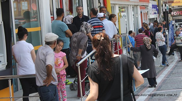 Ramazan Bayramı’na günler kala, vatandaşların Ramazan bayramı alış veriş telaşı devam ediyor. Edirne’de vatandaşlar gerek para çekmek ve göndermek gerekse işlemlerini gerçekleştirmek isteyen vatandaşlar banka şubeleri ve bankamatiklerin önünde uzun kuyruklar oluşturdu. Sabahın erken saatlerinden itibaren oluşmaya başlayan kuyruklar, saatler geçmesine rağmen azalacağına artarak devam etti.Uzun süre kuyrukta bekleyen vatandaşlar, Ramazan Bayramı tatili öncesi işlemlerini halletmek zorunda olduklarını ve beklemekten başka ellerinden bir şey gelmediği belirtti. Özellikle bayramlar ve belirli günlerde bankalarda uzun kuyruklar oluştuğunu işaret eden vatandaşlar, bu durumun kendileri için büyük sıkıntıya neden olduğunu ifade etti.