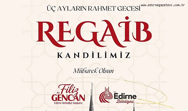 Edirne Belediye Başkanı Filiz Gencan, Regaib Kandili ve Üç Ayların başlangıcı sebebiyle bir kutlama mesajı yayımladı.