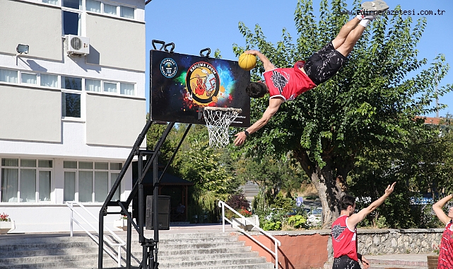 Trakya Üniversitesinde (TÜ) akrobat basketbolcuların "Karizma Show" smaç gösterisi ilgiyle izlendi.Üniversitenin oryantasyon programı kapsamında TÜ Sağlık, Kültür ve Spor Daire Başkanlığı'nın katkılarıyla düzenlenen gösteride basketbolcular akrobatik smaçlar yaptı.Emre Saraç kaptanlığındaki ekipte Melisa Özkan, Tuğba Akpınar, Hüseyin Yalçın, Hasan Polat ve Onur Okur, bireysel ve takım halinde smaç gösterisi gerçekleştirdi.Karizma Show ekibi, gösterilerinde müzik ve danslar eşliğinde mini trambolin yardımıyla farklı stillerde smaçlarla topu potayla buluşturdu. Gösteri ilgiyle takip edildi.Takım kaptanı Emre Saraç, AA muhabirine ekip olarak yüksek performanslı bir gösteri yaptıklarını söyledi.Gösterilen ilgiden memnuniyet duyduklarını belirten Saraç, şunları kaydetti:"Karizma Show ekibi jimnastik ve basketbolu birleştirip müzikle bir şölen halinde sunan Türkiye'nin en ekstrem gösteri ekibidir. Basketboldaki birçok smacı akrobatik hale getirip müzikle bir eğlence şeklinde gösteriyoruz. Değirmen smaç, 360 derece smaç ve salto smaç gibi hareketlerimiz var. Gittiğimiz her yerde ilgi görüyoruz."aa