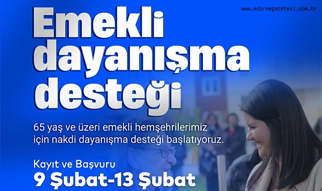 Edirne Belediye Başkanı Filiz Gencan, 65 yaş ve üzeri emekli vatandaşlara yönelik nakdi dayanışma desteğinin başlatıldığını açıkladı.