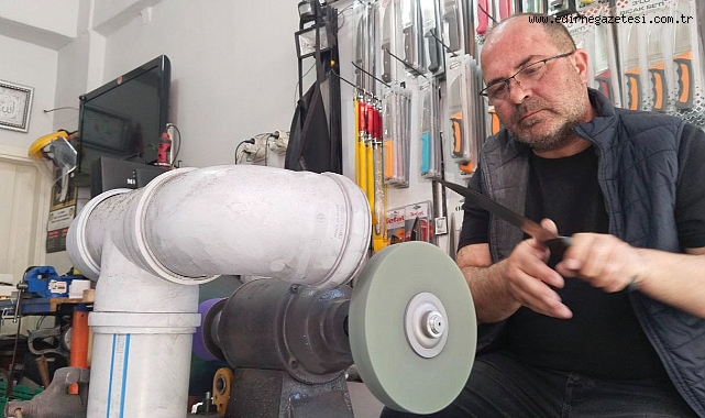 Kurban Bayramı’na yaklaşılırken, Edirne’de bayramın vazgeçilmez hazırlıklarından biri olan bıçak bileme mesaisi de başladı. Kurban kesecek vatandaşlar ile kasapların ihtiyacı olan keskin bıçaklar için bileme tezgahları yeniden sokaklardaki yerini aldı. Bıçak, satır ve balta gibi kesim aletlerini bileyen ustalar, bayram yoğunluğuna hazır.