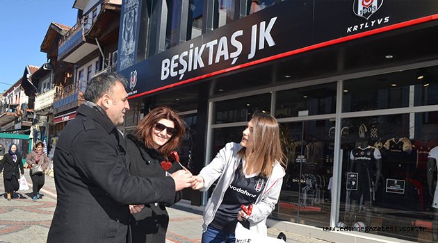 1990 Edirne Beşiktaşlılar Derneği, 14 Şubat Sevgililer Günü dolayısıyla Saraçlar Caddesi’nde vatandaşlara üzerinde Beşiktaş’a olan aşklarını anlatan kalpler hediye etti.