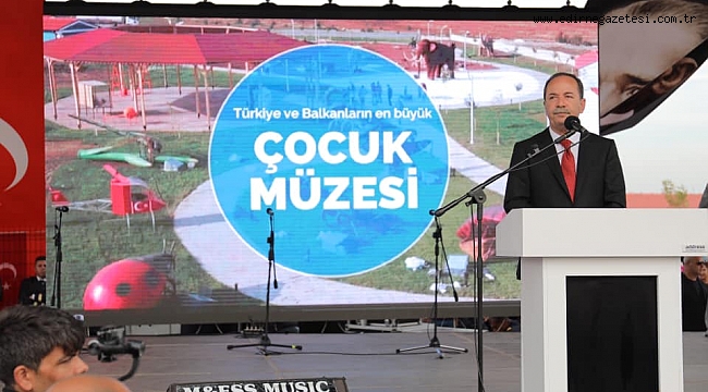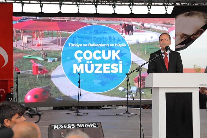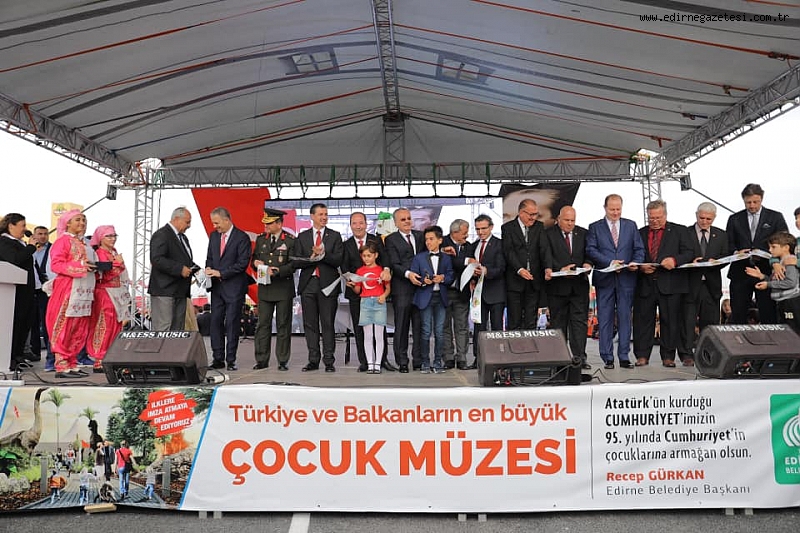 Edirne Belediye Başkanı Recep Gürkan, yaptıkları çalışmaların devam edeceğini vurguladı. Eğitimin ülke bekası için ne derece öneme sahip olduğunu bildikleri ve çocuklar için yapılan çalışmaların devam edeceğini vurguladı. Tüm Dünyada Finlandiya Eğitim Sistemi olarak bilinen sistemi ilk olarak uygulayan ülkenin aslında Türkiye olduğunu, açılan müzenin de çocuklara armağan ederek; “Bugün Dünyanın neresine giderseniz gidin, en iyi eğitim modeli dediğinizde Finlandiya eğitim modeli karşınıza çıkar. Dünyanın en mutlu çocukları hangi ülkenin çocukları diye baktığınızda Finlandiya çocukları çıkar karşınıza. Bu meşhur eğitim sadece Finlandiya’da değil, bütün dünyada ilk uygulayan ülke Türkiye’dir. Bu fikri ortaya atan dönemin Milli Eğitim Bakanı Hasan Ali Yücel’dir. Halkımız velilerimiz buranın ne olduğunu kısa sürede öğrenecektir. Israrla söylemek isterim ki burası çocuk parkı, dinazor parkı değil. Burası okul dışı öğrenme ortamı sağlayan, dünyanın oluşumundan bugüne kadar canlı yaşamını öğreten, sevgi, saygı, hoşgörü ve yardımlaşmayı, felsefesiyle ve uygulamasıyla öğretecek olan interaktif evrensel çocuk müzesidir. Cumhuriyetin 95. Yılında, Cumhuriyetin çocuklarına armağan olsun. Aldıkları eğitimle sadece birbirleriyle değil, Almanların, Fransızların çocuklarıyla yarışacak nitelikte bir eğitime sahip olacaklar. Çünkü onlar Mustafa Kemal’in evlatları, onlar Türkiye Cumhuriyetinin çocukları” dedi.