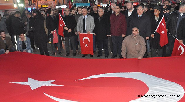 Dün akşam Şükrüpaşa okulunun önünde toplanan Edirne Ülkü Ocakları Başkanlığı üyeleri ve vatandaşlar, sloganlar eşliğinde Atatürk Anıtına kadar yürüyerek terörü lanetlediler. Atatürk Anıtında saygı duruşu ve istiklal marşının okunmasının ardından konuşma yapan Edirne Ülkü Ocakları Başkanı Taner Albayrak, Okyanus ötesi güçlerden, haçlı ittifakından destek bulan hainler cennet vatanımızı iç savaşa sürüklemek için var kuvvetlerinle saldırıya geçmiş bulunmaktadırlar. Tarihten ders almamış bu gafiller, türkün imanlı gövdesini yere sereceklerini zannetmektedirler” dedi.