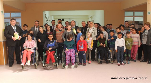 Türk Böbrek Vakfı Trakya Koordinatörlüğü tarafından gönderilen 8 adet tekerlekli sandalye, Edirne Kırkpınar Lions Kulübü Kurucu Başkanı Mehmet İriş ve beraberlerindekiler ile Edirne Özel Eğitim Uygulama Okulu ve İş Merkezi’ne 5 adet, Edirne Şehit Aileleri Derneğine de 3 adet tekerlekli sandalye teslim edildi.