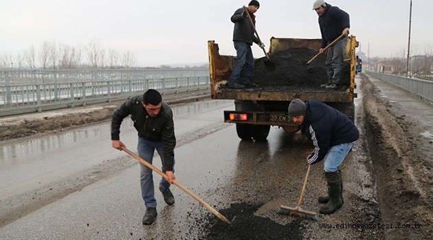 Aşırı soğuk hava ve kar yağışından dolayı kent merkezindeki bazı yolların zarar gördüğünü belirten Edirne Belediye Başkanı Recep Gürkan, “Kar yağışının sona ermesiyle birlikte ekiplerimiz, kent merkezinde bozulan yolları tespit etmeye başladı. Zübeyde Hanım Caddesi, Şehit Üsteğmen Efkan Yıldırım, Orduevi ve Gazimihal Köprüsü’nde onarım çalışmaları tamamlandı. Oluşabilecek risk faktörlerini önlemek amacıyla ekiplerimiz, kent merkezinde bozulan tüm yolların onarım çalışmalarını gerçekleştirecek” dedi.