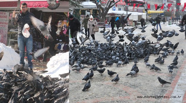 Saraçlar Caddesi’nde kuşlara yem atan Murat Karayel adlı esnaf, kendisini şikayet eden bir başka esnaf yüzünden Edirne Belediye Zabıtası ekipleri tarafından uyarıldı. Yaşadıklarına şaşıran Karayel, uyarıya rağmen ağır kış koşullarında aç kalan kuşları beslemeye devam edeceğini söyledi.