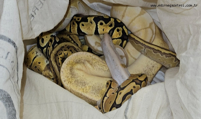 Kapıkule Gar Gümrüğü'ne gelen Bosfor yolcu treninin görevlilerce kontrol edilmesi sırasında bir kompartımandaki yatağın altında her biri fileye konmuş ve kabanla gizlenmiş 2'si ölü piton cinsi 33 yılan bulundu.