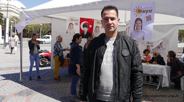 Gençlik kollarının yaptığı etkinlikte CHP’li gençler halka broşürlerle referandum için çalışmalarını sürdürdü. CHP Edirne Gençlik Kolları Başkanı Kutay Özköse, “Referanduma günler kaldı. Bizde ‘Hayır’lı çalışmalarımıza devam ediyoruz. Bugün Saraçlar Caddesi’nin girişinde ‘Hayır’ çadırında vatandaşlarımızın yoğun ilgisiyle karşılaştık. Aslında ülke genelinde de ‘Hayır’a yoğun bir ilgi söz konusu. 16 Nisan akşamı eminim ki ‘Hayır’ çıkacak ve bu ülke o karanlık çarpık anayasal düzenden vazgeçmiş olacak. Edirne’de büyük ihtimalle yüzde 71-75 bandında bir ‘Hayır’ oyu çıkacağına ben inanıyorum. Türkiye genelinde de ‘Hayır’ın önde olduğunu anketlerden ve ya insanların göstermiş oldukları ilgiden görebiliyoruz. Bu anayasanın değişikliğinde 18 maddenin ‘Evet’ denebilecek hiçbir kısmı yok.  Bu 18 maddede, işsizliğe son verecek, ekonomiyi düzeltecek, terörü bitirecek, atanamayan öğretmenlerin atanmasını sağlayacak hiçbir madde yok.  Burada sadece bir kişinin, tek adamlığı resmi olarak ülkeye getirmeye çalışması vardır. Bizde bunun önüne geçmek için, geleceğimizi kurtarmak için ‘Hayır’lı çalışmalarımıza devam ediyoruz.  Devam edeceğiz” dedi.