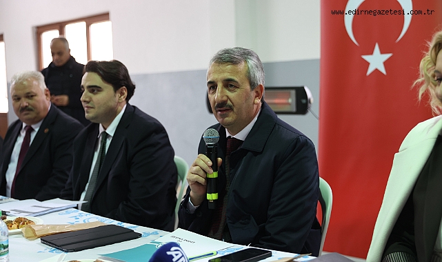 Edirne Valisi Yunus Sezer, Büyükdöllük köyünde muhtarlar ve köy sakinleriyle toplantıda bir araya geldi.
