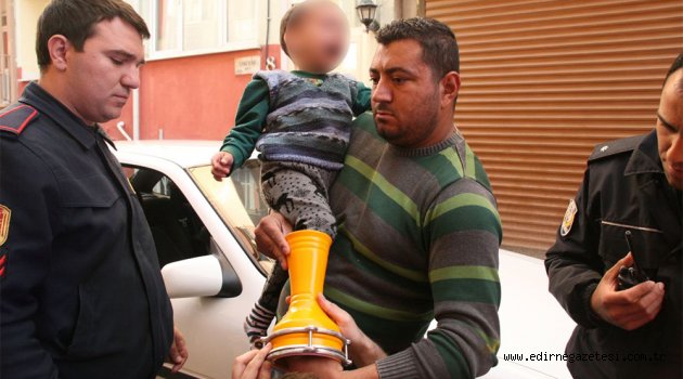 Edirne’de, oynadığı darbukaya ayağının sıkışmasına neden olan 4 yaşındaki çocuğun imdadına itfaiye yetişti.