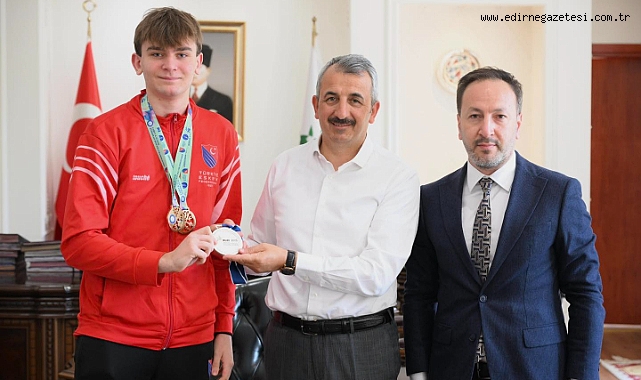 Edirne Valisi Yunus Sezer, Çin'de düzenlenen 2025 Gençler ve Yıldızlar Eskrim Dünya Şampiyonası'nda dünya ikincisi olan Candeniz Berrak'ı kabul etti.Valilikten yapılan açıklamaya göre, Sezer ziyaretten memnuniyet duyduğunu belirterek Berrak'ı tebrik etti.Berrak da çalışmaları hakkında bilgi verdi.Ziyarette, Türkiye Eskrim Federasyonu Başkanı Abdurrahman Karataş ve Edirne Gençlik ve Spor İl Müdürü Selim Ak yer aldı. AA