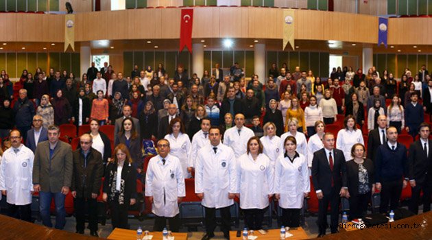 Rektör Vekili Prof. Dr. Osman Nuri Hatipoğlu, velileri tebrik ederken öğrencilere “Meslek sahibi olmak tek başına ayakta durabilmenin tek yoludur. Meslek sahibi olmak aile kurabilmenin ilk adımıdır. Meslek sahibi olmak hayatın idamesinin vazgeçilmez koşuludur. Siz de bu bilinçle Üniversitemizdeki 5 yıllık eğitim sürecini sadece okulu bitirmek ve diploma almak olarak görmeyin. Bu süreci mezuniyet sonrası yeni hayatınıza en donanımlı şekilde başlama fırsatı olarak değerlendirin. Mesleki gelişiminiz yanında girişimcilik yönünüzü, insan ilişkilerinizi, iletişim yeteneklerinizi geliştirin. Sosyal ve sportif faaliyetlere katılın. Kütüphaneden, öğrenci topluluklarından maksimum seviyede yararlanın. Üniversitenin sizlere sunduğu imkanların farkında olun ve bu imkanları kendinizi yenilemek ve geliştirmek için sonuna kadar kullanın. Mesleğiniz insanlık tarihi kadar eski ve kutsal bir meslektir. Saflığın, temizliğin ve asaletin simgesi olan beyaz önlüklerinizin hep temiz kalması dileğiyle.” dedi.
