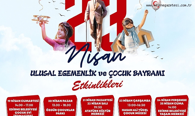 Edirne Belediyesi, 23 Nisan Ulusal Egemenlik ve Çocuk Bayramı’nı Edirneli çocuklara unutulmaz kılacak dopdolu bir programla kutlamaya hazırlanıyor. 19-25 Nisan tarihleri arasında düzenlenecek etkinliklerde konserlerden tiyatroya, atölye çalışmalarından sokak oyunlarına kadar bir çok renkli etkinlik çocukları bekliyor.Kutlamalar, 19 Nisan Cumartesi günü saat 14.00’te Edirne Belediyesi Çocuk Evi’nde (ROMACTED) başlayacak. Meriç Ritim Grubu, bando konseri, çocuk modern dans gösterileriyle başlayacak programda; çocuklar çanta boyama, bisiklet üstünde yoga ve yaratıcı bisiklet atölyeleriyle eğlenerek öğrenecek. Patlamış mısır, pamuk şeker, kek ve balon ikramlarıyla alanda bayram coşkusu yaşanacak.20 Nisan Pazar günü etkinlikler Özgür Çocuklar Parkı’na taşınacak. Halk oyunları ve modern dans gösterilerinin yanı sıra; keçeden kapı süsü, alçı büst boyama, 23 Nisan tacı ve Türk bayrağı yapımı gibi yaratıcı atölyeler çocukları bekliyor olacak. Halat çekme ve çuval yarışları gibi geleneksel oyunlarla alanda bayram neşesi yaşanacak. SANATLA DOLU İKİ AKŞAM21 Nisan Pazartesi günü saat 19.30’da ise Edirne Belediyesi Atatürk Kültür Merkezi ve Belediye Konservatuvarı’nda Edirne Belediyesi Çocuk Tiyatrosu sahne alacak. 22 Nisan’da ise yine aynı saatte Edirne Belediyesi Çocuk Orkestrası konseri düzenlenecek. 23 NİSAN’DA CUMHURİYET’İN ÇOCUKLARI SAHNEDEEdirne Belediyesi Hasan Ali Yücel Çocuk Müzesi’nde 23 Nisan günü saat 13.00’te başlayacak programda, tuval boyama ve kara kalem kurslarına katılan öğrencilere sertifikaları verilecek. Ritmik cimnastik, bale, sihirbaz gösterisi ve interaktif danslarla sahne çocukların olacak. 14.30’dan itibaren başlayacak sanat, zeka oyunları ve geleneksel oyunlar atölyeleriyle bayram sevinci gün boyunca sürecek. Etkinlik alanında yüz boyama, palyaço ve maskot bando da çocuklara eşlik edecek. Türk bayrakları ve pamuk şekerler ücretsiz olarak dağıtılacak. Kutlamalar, 24 Nisan’da “Türk Bayrağı Deneyi” ve 25 Nisan’da “Tuz Seramiği Atölyesi” ile 3-6 yaş grubu çocuklar için düzenlenen etkinliklerle sona erecek. Her iki etkinlik de Edirne Belediyesi Yaşam Merkezi’nde saat 14.00’te gerçekleşecek. Çocukların hayatındaki her adımda onların yanında olduklarını vurgulayan Edirne Belediye Başkanı Av. Filiz Gencan Akın şunları söyledi: “Çocuklarımız bizim geleceğimiz, umudumuz ve en kıymetli hazinemiz. Onların mutluluğu, bizlerin en büyük motivasyonu. Bu yıl da çocuklarımız için sadece eğlenceli değil, aynı zamanda eğitici, düşündürücü ve yaratıcı etkinliklerle dolu bir 23 Nisan programı hazırladık. Onların taleplerini, önerilerini dikkate alarak her yaş grubuna hitap eden kapsamlı bir içerik oluşturduk. İstedik ki her çocuk kendini bu bayramda özel ve değerli hissetsin. Çünkü onlar her şeyin en güzelini hak ediyor. Edirne Belediyesi olarak çocuklarımızın hayal gücünü geliştiren, sosyal yönlerini güçlendiren ve onları özgürce ifade etmeye teşvik eden her çalışmanın destekçisiyiz. Tüm çocuklarımızı ve ailelerini bu büyük bayram sevincini birlikte paylaşmaya davet ediyorum” HABER MERKEZİ