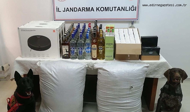 EDİRNE (AA) - Edirne'de jandarma ekiplerince oto yedek parçası, kaçak alkol, uyuşturucu ve çok sayıda kaçak eşya ele geçirildi.