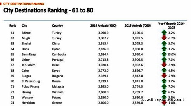 Edirne, dünya sıralamasında 61. sırada