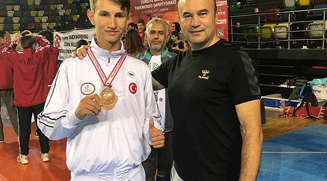 Sıkletindeki 118 sporcu arasından 6 maç yaparak Türkiye 3’ncüsü olan Yumurtacı kürsüde bronz madalya aldı