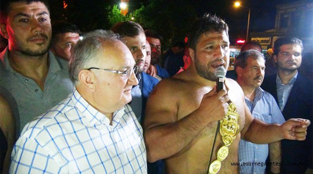 655’nci Tarihi Kırkpınar Yağlı Güreşleri Başpehlivanı Recep Kara güreşlerin ardından Sarayiçi Er Meydanı'ndan faytonla şehir merkezinde geldi. Cadde ve sokakların kenarlarında toplanan binlerce kişi Kara’ya sevgi gösterisinde bulundu. Recep Kara tarihi Kırkpınar pehlivanlarının geleneksel olarak güreşlerden sonra yıkanmak için gittikleri hamama faytonla ilerlerken yol üstünde insanların demokrasi şehitleri için toplandıklarını görünce faytondan indi. Başpehlivan Kara 15 Temmuz’da yaşanan darbe girişimini protesto ve demokrasi nöbeti bekleyen kalabalığa coşkulu bir konuşma yaptı. BAŞPEHLİVAN ‘’MEYDANLARA SAHİP ÇIKALIM’’Başpehlivan Recep Kara meydanda şöyle konuştu, “15 Temmuz'da darbeye karşı bu milletimiz vücudunu siper etmiştir. Millete karşı yapılan darbede vatanı için milleti için canını veren milletimize, polislerimize, askerlerimize, vatandaşlarımıza, bu er meydanının altın kemerini, Türkiye başpehlivanlığını onlara hediye ediyorum, ruhları şad olsun. Milletin silahı ile milleti vuran, millete darbe gösterisi yapan bu insanlara lanet olsun. İnşallah Allah bize bir daha böyle acılar göstermez. Birlikteliğimiz, beraberliğimiz devam ettiği müddetçe Allah'ın izniyle bizi kimse yıkamayacak. Burada bu meydanları boş bırakmayın. Allah bizlere böyle acılar yaşatmasın.” Kalabalığın büyük ilgi gösterdiği Başpehlivan Kara daha eline aldığı dev Türk bayrağı dalgalandırarak vatandaşları selamladı. Boynunda altın kemeri ile başpehlivan Kara, yatsı ezanı okunurken usta ve çırakları ile birlikte geleneksel hamam sefasına gitti.