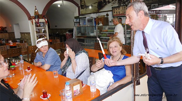 ‘Bahri Bey ve Kemal Usta’ isimli işletmede Kırkpınar köşesi hazırlanarak, tümyağlı güreş unsurları sergilendi. Edirne’nin düğününün başlamak üzere olduğunu kaydeden Dinar, “Biz esnaf olarak ta burada tanıtım açısından Kırkpınar’a ait materyallerimizi dışarıdan da görülmesi açısından dışarıya çıkardık. Zaten sizler de biliyorsunuz ki yılın 365 günü dükkanımızda bulunan materyalleri dışarıda sergiliyoruz. Kırkpınar’a ait ne varsa, yağ kazanından, tutun da davuluna, zurnasına, pehlivan kıspetine, ağa kıyafetine, tesbihine kadar her şeyini sergiliyoruz. Yoldan gelen geçen insanlar buraya gelen insanlar Kırkpınar hakkında biraz bilgi alsınlar” şeklinde konuştu.MÜŞTERİLERE KIRMIZI DİPLİ MUMLA DAVETKırkpınar’a davet etkinliği her yıl yaptıklarını kaydeden Dinar, Bütün esnaflar elinden geldiğince Kırkpınar için bir şeyler yaparsa zaten bize para olarak geri dönecek, çünkü bizler kazanacağız. Türkiye’nin her tarafından hatta dünyanın her tarafından ne kadar çok misafir Edirne’ye gelirse önce biz esnaflar kazanacağız. Bunun bilinci içerisindeyiz, o yüzden böyle bir şeye kalkıştık, olumlu tepkiler alıyoruz. ‘Bu hafta Kırkpınar haftası mı? ne güzel Kırkpınar’a geleceğiz’ diyorlar bu da bizi memnun ediyor. Edirne Belediyesi’nin bizlere vermiş olduğu Kırkpınar davet mumlarını da müşterilerimize dağıtıyoruz” dedi.KIRMIZI DİPLİ MUMU SORUYORLARDevt için verdiğimiz kırmızı dipli mum Kıkrpınar ve Edirne’ye özgü bir davet şekli olduğuna dikkat çeken Dinar, “Bazı misafirlerimiz bu mum hakkında bize bilgi soruyorlar. Bu ne demek oluyor, neden kırmızı dipli mum onu da anlatıyoruz. Çünkü hoşumuza gidiyor bu bizim bu bir davet çünkü o daveti en iyi şekilde yapmaya çalışıyoruz. Buradan Edirne Belediyesine de çok teşekkür ediyoruz. Hem bu büyük organizasyonu yaptıklarından dolayı, hem de tanıtımda bizlere gerekli desteği verdikleri için” diye konuştu.
