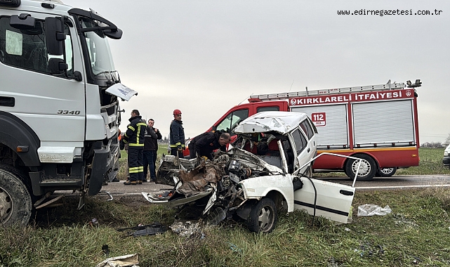 Kırklareli'nde hafriyat kamyonu ile otomobilin çarpıştığı kazada 1 kişi öldü, 1 kişi yaralandı.