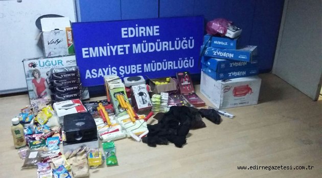 toplam değeri 15 bin TL olarak değerlendirilen Tekli, ikili dörtlü ocak, duş setleri, ufo tabir edilen elektrikli ısıtıcılar, Nalburiye malzemeleri, tuhafiye malzemeleri, eldivenler, bereler, çoraplar, çok sayıda gıda malzemesi, projeksiyon cihazı çıkmış, bu malzemelere el konulmuş, tahkikat sonrası bulunan çalıntı malzemeler müştekilerine teslim edildi. Ayrıca malzemelerin bulunduğu ikametin sahibi olan D.E. (46) isimli şahsın çalıntı malzemeleri Müdürlüğümüz görevlilerinin operasyonu sırasında sobada yakmaya çalıştığı tespit edilmesi sonucu bu şahıs da gözaltına alınmış, şahıslar hakkında dört ayrı işyerinden hırsızlık, hırsızlık malı saklamak, suç delillerini yok etmek, hırsızlık malı satın almak suçlarından ayrı ayrı tahkikat evrakı düzenlendi. şüpheli D.E. (46) ifadesinin ardından Cumhuriyet Savcısının talimatı gereği serbest bırakıldı. Cezaevi firarisi, dört ayrı suçtan aranan ve dört ayrı hırsızlık olayını gerçekleştiren G.T. (25) isimli şahıs çıkarıldığı adli makamlarca tutuklanarak Edirne Kapalı Ceza evine teslim edildi” İfadelerine yer verildi. ASAYİŞ