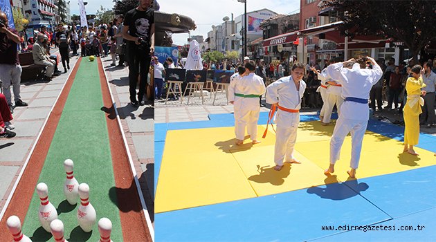 Gençlik Hizmetleri ve Spor İl Müdürlüğünce dün saat 9:40’ta 25 Kasım Stadyumu önünde toplanan kortej Atatürk Anıtına yürüdü.Saat 10:00’da Atatürk Anıtında Gençlik Hizmetleri ve Spor İl Müdürlüğünce anıta çelenk sunumu yapıldı.Daha sonra saat 14:00 ile 16:00 arasında Saraçlar caddesinde etkinlikler yapıldı. Saraçlar Caddesi’nde bir açıklama yapan Edirne Valisi Günay Özdemir, “Öncelikle Gençlik ve Spor bayramımızın gençlerimize, ülkemize ve bütün insanlığa hayırlı olmasını diliyorum. Gençlerimizin Gençlik ve Spor bayramını kutluyorum. Atatürk gerçekten gençleri düşünen, çocukları düşünen, toplumu düşünen ve geleceği düşünen çok önemli bir lider olarak Türkiye’nin geleceği ile ilgili her ayrıntıyı düşünmüş ve bütün işleri de bu ayrıntılı düşünme sistemine göre kurmuş önemli bir lider. Ona da gerçekten bugün için şükranlarımızı tekrar tekrar sunuyoruz. Çünkü geleceğimizin teminatı olan gençlere bu bayramı vererek aslında gençlerimizin geleceğe hazırlanması, geleceği yönetmesi, gelecekle ilgili fikirleri olması konusunda önemli bir adım atmış. Bu adımı da biz bugün hayranlıkla ve heyecanla karşılıyoruz. Bugünü gençlerimizle beraber kutluyoruz. Bugün özellikle Edirne’de gençlerimizin bayramını gençlerimizle beraber çarşıda beraber kutluyoruz. Aslında 1 hafta boyunca etkinliklerimiz devam ediyor. Bu etkinlikler içerisinde bugün sadece 2 saat boyunca burada yapacağımız bir etkinlik ama onun dışında bütün Edirne’de Gençlik ve Spor bayramıyla ilgili etkinliklerimiz devam ediyor” dedi.Saraçlar Caddesi üzerinde olan etkinlikler;Geleneksel spor dalları, basketbol, voleybol, cimlastik, tenis, boks, pandomim gösterisi, yüz boyama etkinliği, satranç, mangala bileklik yapma, kuş yemliği yapma, mini halı dokuma, hat sanat gösterisi, şişme oyun gösterisinden mini bowling, şut becerisi, tırmanma duvarı, boks, şişme dart, havalı hokey ve masa langırt eğlenceleri yapıldı.
