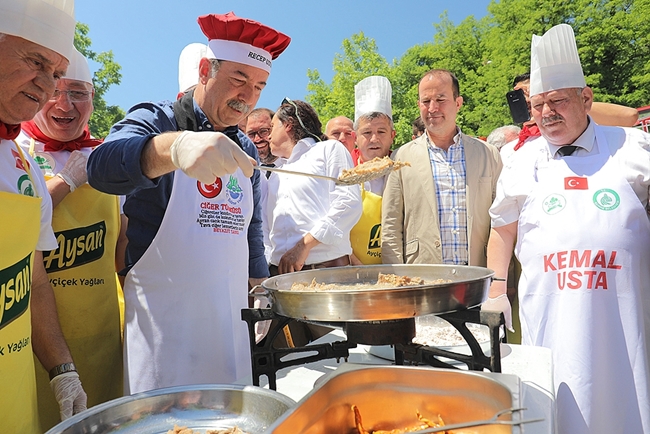 Türkiye’nin en renkli festivallerinden biri olan Edirne Belediyesinin düzenlediği Edirne Bando ve Ciğer Festivalinin 8’incisinin 2. gününde yine coşkulu ve renkli anlar yaşandı. Yurt içi ve yurtdışından bando takımları ve gösteri ekiplerinin katılımıyla adeta bayram havası yaşanan festivalde dün Guiness Rekorlar Kitabına aday olan 2 ton ağırlığında 7 metre 4 cm genişliğinde 80 cm derinliğindeki devasa ciğer tavasında ciğer pişirilip halka dağıtıldı. Yurtiçi ve yurtdışından gelen turistler de Meriç Köprüsünden başlayan etkinliği, ciğer pişirilecek alana kadar adeta izdiham yarattı. 2 bin kişiye yakın katılımın olduğu festivalde, 400’den fazla Emniyet, Sağlık, İtfaiye, Zabıta mensupları ve görevlinin görev aldığı festival alanında oluşabilecek sorunlara karşı yerlerini aldı. 40’ın üzerinde kanal ve gazetenin yakından takip ettiği festivalde devasa tavada 20 ciğer ustası ciğer pişirdi. Festivalinin 2. gününde Edirne’de görev yapan ciğerci ustaları ve çırakları devasa tavanın hazırlanan 9 metre çapındaki platformda yerleştirmesiyle yağlarını döküp ciğerlerini pişirdiler. 12 ton odun ve 3 ton kömür’ün yakıt için harcandığı tavada 2 bin 520 litre Ayçiçek yağı, 250 kilo un ile 600 kilo ciğer pişirildi. Festival alanında renkli anlar yaşanırken Edirne Vali Yardımcısı Yusuf Güler, Edirne Belediye Başkanı Recep Gürkan, Edirne Kültür ve Turizm İl Müdürü Ahmet Hacıoğlu, Vakıflar Edirne İl Müdürü Osman Güneren, Edirne İl Genel Meclis Başkanı Mehmet Geçmiş ve Edirne’de görev yapan çeşitli kurum ve kuruluşların yanı sıra siyasi parti temsilcileri, STK’lar ve dernek başkanları da festival alanındaydı.