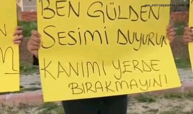 Edirne’de geçtiğimiz haftalarda bıçaklanarak öldürtülen , 15 yaşındaki Gülden Coni için arkadaşları yüzlerine taktıkları Gülden resmi ile adalet istediklerini belirttiler. Yıldırım Hacı Sarraf Mahallesi’nde bir araya gelen Gülden’in arkadaşları ve komşuları ellerinde “Gülden için adalet istiyoruz” yazılı pankart ile dövizler ile yaşanan vahşetin unutulmaması ve katil zanlısının en ağır cezayı alması ve kadın cinayetlerinin son bulması amacıyla farkındalık oluşturmak için video çektiler.