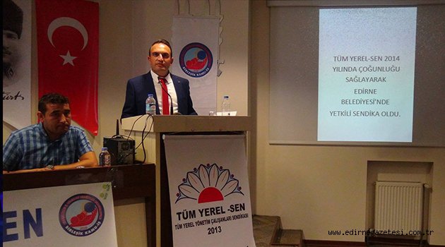 Tüm Yerel Sen’in seçimli olağan genel kuruluna katılan Genel Başkan Cengiz Gülebay, terör saldırılarına tepki gösterdi. Tüm Yerel Yönetim çalışanları sendikası Tüm Yerel Sen’in seçimli 1. Olağan Genel Kurulu yapıldı. ETSO salonunda yapılan genel kurula Genel Başkan Cengiz Gülebay, Edirne Şube Başkanı Savaş Çerkez, Tez Koop. İş Eğitim İş sendika temsilcileri ile Tüm Yerel Sen üyeleri katıldı. Divan Başkanlığını Nazım Kırcı’nın yaptığı genel kurul, Saydı Duruşu ve İstiklal Marşı’nın okunmasıyla başladı. Kırcı, açılış konuşmasında emek mücadelesinin zor olduğunu belirterek, kongrenin hayırlı olması temennisinde bulundu.Tüm Yerel Sen Genel Başkanı Cengiz Gülebay konuşmasında artan terör olaylarına tepki gösterdi. Son 48 saatte 27 şehit verildiğini belirten Gülebay, “ Güneydoğu’da adı konulmamış çirkin bir savaş var. Teröre lanet olsun” dedi.Tüm Yerel Sen’in üç yıl önce kurulmuş yeni bir sendika olduğunu belirten Genel Başkan Gülebay, mevcut sendikaların memur sorunlarından uzak olduğunu, her birinin bir siyasi partiye mensup olduğunu söyleyerek, Edirne’de yetkili sendika olarak üç yılda 51 ilde örgütlendiklerini açıkladı.Tüm Yerel Sen Edirne Şube Başkanı Savaş Çerkez’de kısa sürede Edirne Şubesini oluşturarak, Edirne Belediyesinde yetkili sendika olduklarını söyledi.Gündemdeki diğer maddelerin görüşülmesinin ardından tek liste ile yapılan seçimde yeni yönetim kurulu şu isimlerden oluştu; Savaş Çerkez, Bülent Uluca, Seçkin Çetin, Elif Davulcu, Mümin Arıcanlı, Onur Gavuzoğlu, Ediz Martin, Yeni yönetim kurulu aralarında toplanarak görev bölümü yapacak.