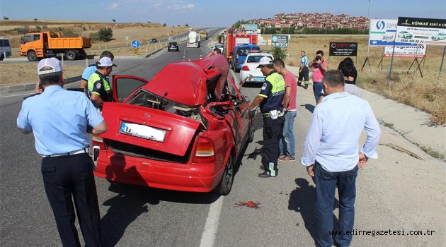 Edirne'de, düğün töreni öncesi hazırlık için köyünden şehir merkezine gitmeye çalışan E. E. (28) yönetimindeki araç, önündeki kamyona çarptı. Kazada, E. E’nin 9 yaşındaki yeğeni F. E. hayatını kaybetti. Kaza, öğle saatlerinde Edirne kent merkezi çıkışı yakınlarında bulunan Sazlıdere Köyü mevkiinde meydana geldi. Edinilen bilgiye göre, Cumartesi akşamı gerçekleşeceği düğünü öncesi son hazırlıklarını tamamlamak üzere Abalar Köyü’nden şehir merkezine gelmek isteyen ve Edirne Belediyesi İtfaiye Müdürlüğü’nde çalıştığı öğrenilen E. E.’in kullandığı Çanakkale plakalı araç, Edirne plakalı kamyonete arkadan çaptı. Kazayı kamyonet sürücüsü yara almadan atlatırken, E. E. hurdaya dönen araçtan yaralı olarak kurtuldu. Kazada, yan koltukta oturan 9 yaşındaki yeğeni F. E. ise ağır yaralandı. Talihsiz yeğen F. E. (9) olay yerinde yapılan ilk müdahalenin ardından kaldırıldığı Trakya Üniversitesi Tıp Fakültesi Hastanesi'nde yapılan tüm çabalara rağmen hayatını kaybetti.GELİNLİK ARAÇTAYDIEdirne Belediyesi İtfaiye Müdürlüğü’nde görevli olan E. E.’nin 13 Ağustos 2016 tarihinde eşi C. E. ile nikah yaptığı ve bu akşam Abalar Köyü’nde düğün yapmaya hazırlandıkları öğrenildi. Düğün yolunda yapılan talihsiz kaza sonrası araçta yanında bulunan yeğeni F. hayatını kaybederken, hurdaya dönen araç içerisinden bir başka dram ortaya çıktı. E. E’nin mesai arkadaşları olan itfaiye ekipleri, kazaya yaptıkları müdahale sonrasında eşi C. E.’ye ait olan beyaz gelinliği aracın arka koltuğundan alarak sahip çıktı. Kazayla ilgili başlatılan soruşturma devam ederken, jandarma ekipleri kamyonet sürücüsünü ifade için gözaltına aldı.TEM’de KAZA: 11 YARALIKaza, TEM otoyolu üzerinde Edirne’ye 30 kilometre kala meydana geldi. Edinilen bilgiye göre İstanbul’dan Edirne’ye gitmekte olan E.Ö yönetimindeki otobüs, Edirne'ye 30 kilometre kala V.H. yönetimindeki Ukrayna plakalı kumaş yüklü TIR’a arkadan çarptı. Kazada, yolcu otobüsünün önünde oturan muavin E.I., araç içerisine sıkışınca olay yerine gelen itfaiye ekipleri tarafından kurtarıldı. Kazada yaralanan E.I., ile birlikte otobüste bulunan 10 yaralı ambulanslarla Trakya Üniversitesi Tıp Fakültesi Hastanesi ile çevredeki hastanelere kaldırılırken, kaza nedeniyle TEM otoyolunda trafik uzun süre aksadı. Kaza sonrası yolcu otobüsünün ön kısmında büyük hasar oluşurken, uzun süre aksayan trafik akışı otobüsün olay yerinden kaldırılmasından sonra normale döndü.Kazayla ilgili soruşturma başlatıldı.