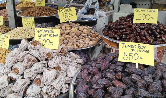 Ramazan ayına günler kala, gıda fiyatlarında ciddi artış yaşanıyor. İftar ve sahur sofralarının baş tacı hurma fiyatlarını görenler gözlerine inanamıyor.  Jumbo boy hurma 550 TL, Cennet hurma 500 TL ve en ucuzu olan Cezayir hurma 200 TL’den satılıyor.
