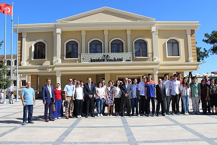 Vali Özdemir, Edirne’nin Türkiye’nin en huzur ve en güvenli kentleri arasında yer aldığını belirterek; Edirne, Türkiye’nin Avrupa’ya bakan yüzü ve Avrupalı bir kent” dedi. Vali Özdemir konuşmasının devamında; “Ciddi anlamda olumsuzluklarla karşı karşıya değiliz. Edirne’deki gençlerimiz ciddi anlamında daha iyiye daha güzel yönelmişler. Kötü alışkanlıkları olmayan sadece akademik başarılarda değil, sosyal ve kültürel yoğun bir şekilde devam eden bir gençlik. Ben bundan dolayı da Edirne’de bulunmaktan mutluyum. Çünkü Edirne, Türkiye’nin en huzurlu, en güvenli kentlerinden birisi. Asayiş anlamında da Edirne’de hiçbir sıkıntıyla karşı karşıya kalmadığımız. Güvenlik anlamında problem yaşamadığımız bir şehir. Bütün velilerimiz, ailelerimiz, gençlerimizin bu konuda hem fikir olduğunu düşünüyorum. Edirne’de 2-3 gibi gecenin geç saatlerinde kadın-erkek fark etmeden sokaklarda dolaşabiliyor ve hiçbir sıkıntı yaşamadan kimse kimsenin hayatına karışmadan demokratik şekilde bir yaşıyor. Bunun nedeni de geçmişten gelen bilgi ve birikiminin bir tezahürü diye düşünüyorum. Edirne, Türkiye’nin Avrupa’ya bakan yüzü ve Avrupalı bir kenti. Yunanistan’dan, Bulgaristan’dan ve Balkanlardan göç etmiş vatanını, milletini seven, Atatürk’ün kurduğu cumhuriyete sahip çıkan bir kentimiz. Bölgemizin tarih boyunca yaşadığı savaşlar sonrası ve burada bulunan sizin dedeleriniz ile nineleriniz vatandan, anavatana göç ettiler. Sizler de vatanınıza, bayrağınıza, milleti sahip çıkmayı dedelerinizden ve ninelerinizden öğreniyorsunuz. Bu da bizim açımızdan çok daha önemli bir konu diye düşünüyorum. Bundan sonra siz bu davranışınızı sizden sonraki gelecek olan nesillere aktaracaksınız. Sizin bir yaşamınız olmuş. Bunun için de sizleri tebrik ediyorum” ifadelerini kullandı. Edirne Valisi Günay Özdemir, derece yapan öğrenciler ile birlikte Edirne Valilik binası önünde hatıra fotoğrafı çektirdi.