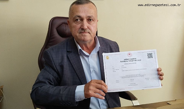 Edirne’de faaliyet gösteren Edirne Süt Üreticileri Birliği Başkanı Mustafa Suiçmez birinci derece tarımsal örgüt belgesi almaya hak kazandı.Edirne İl Tarım ve Orman Müdürü Atilla Beyazıt tarafından düzenlenen törende SÜTÜB Başkanı Suiçmez’e takdim edildi.