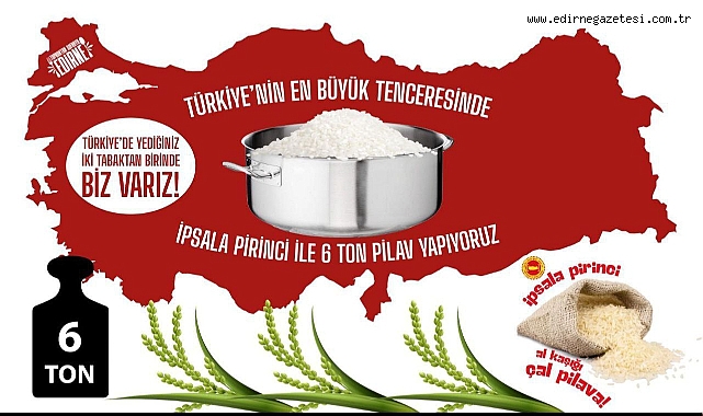 Edirne Valiliğince düzenlenecek “Topraktan Sofraya Gastronomi Festivali” kapsamında, Edirne’nin bereketi ve coğrafi işaretli İpsala pirinci, 6 tonluk pilavla dünya rekoruna imza atacak. Bu tarihi anlar, Söğütlük Millet Bahçesi’nde saat 17.30’da başlayacak. HABER MERKEZİ