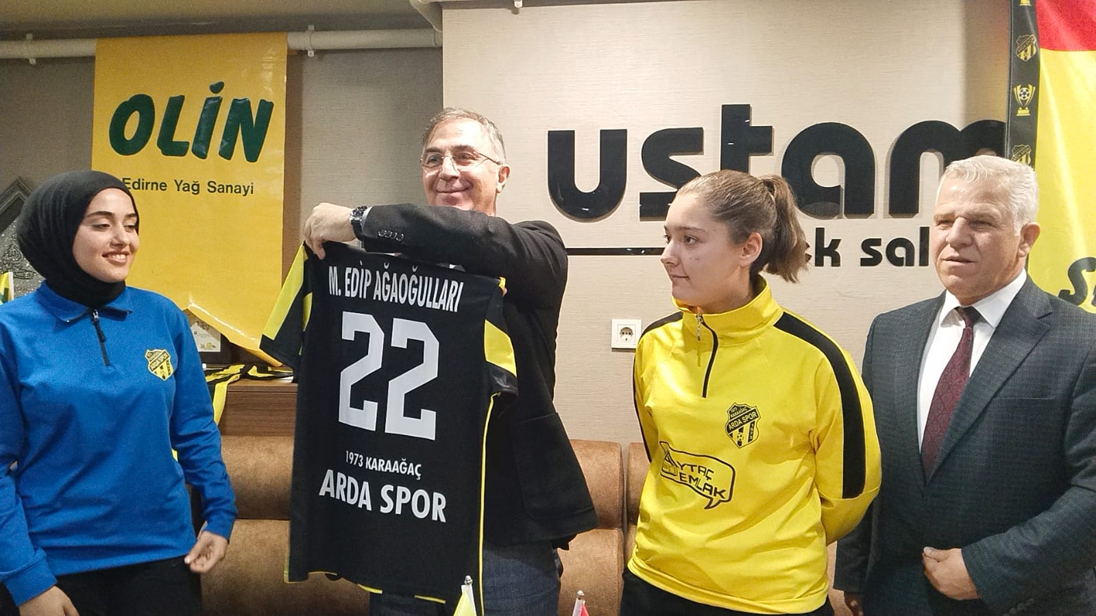 Olin Yağ Sanayi Yönetim Kurulu Başkanı Başkanı Mehmet Edip Ağaoğulları, Karaağaç Ardaspor Başkanı Birol Salçın, 2.Başkan Aytaç Feda ve yönetim kurulu ile beraber kadın futbol takımının oyuncularının katılım ile beraber sponsorluk anlaşması ile ilgili basına kentte bulunan bir işletmede bilgiler verildi. Toplantı sonrasında Mehmet Edip Ağaoğulları’nın isminin yazılı olduğu Karaağaç Ardaspor, forması hediye edildi.